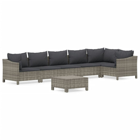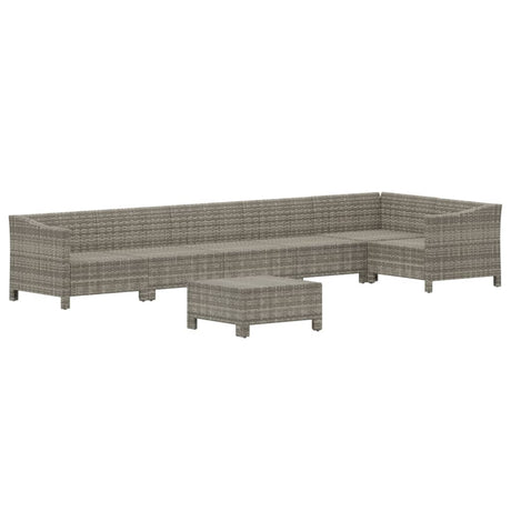7 Piece Garden Lounge Set with Cushions Grey Poly Rattan