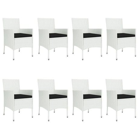 9 Piece Garden Dining Set with Cushions White Poly Rattan