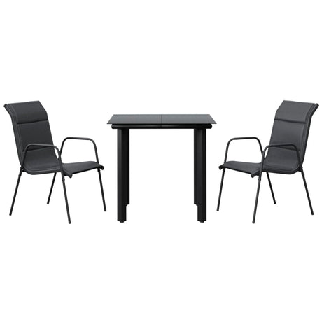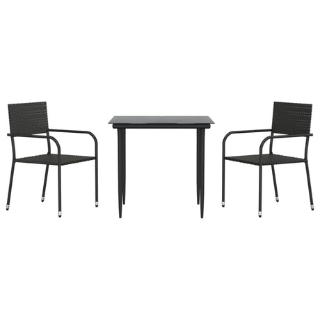 3 Piece Garden Dining Set Black Poly Rattan and Steel