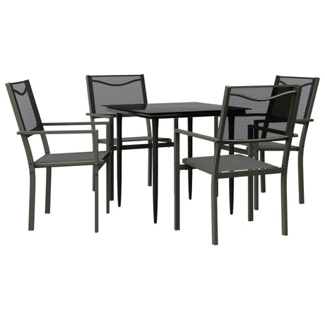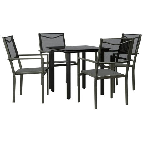 5 Piece Garden Dining Set Grey and Black Poly Rattan and Steel