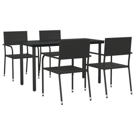 5 Piece Garden Dining Set Black Poly Rattan and Steel