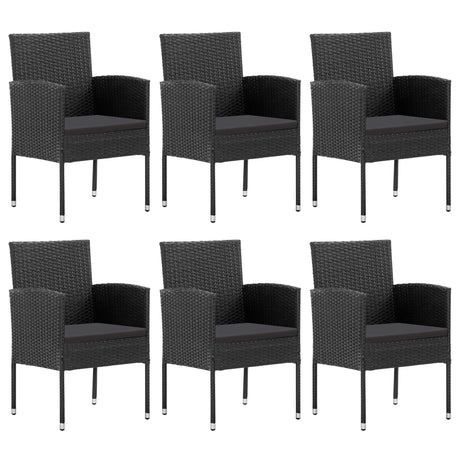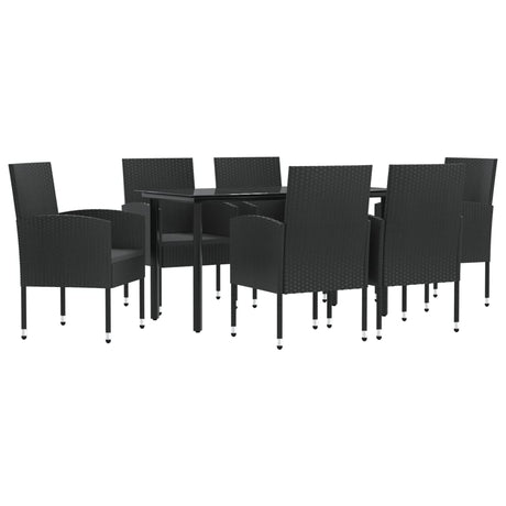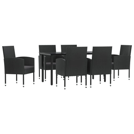 7 Piece Garden Dining Set Black Poly Rattan and Steel