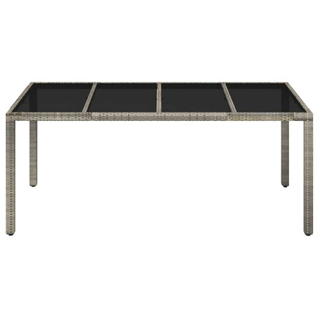 Garden Table with Glass Top Grey 190x90x75 cm Poly Rattan