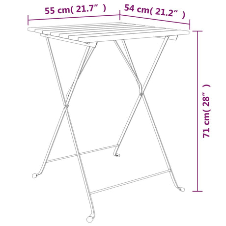 Folding Bistro Table 55x54x71 cm Solid Wood Teak and Steel