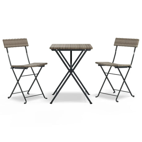 3 Piece Folding Bistro Set Grey Poly Rattan