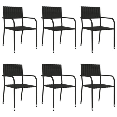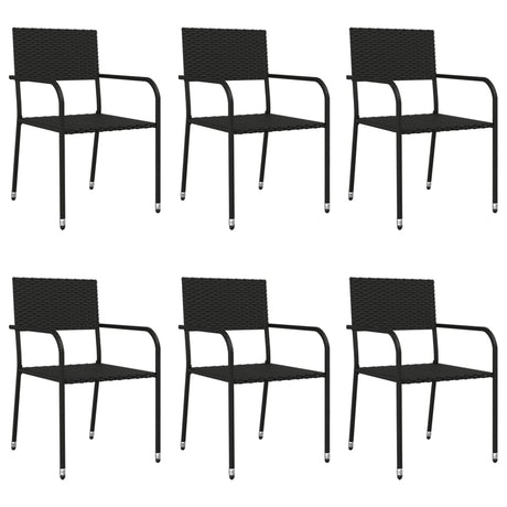 7 Piece Garden Dining Set Black Poly Rattan and Steel