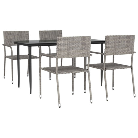 5 Piece Garden Dining Set Grey and Black Poly Rattan and Steel