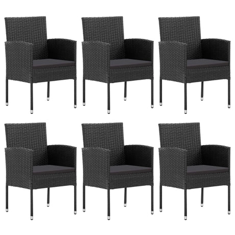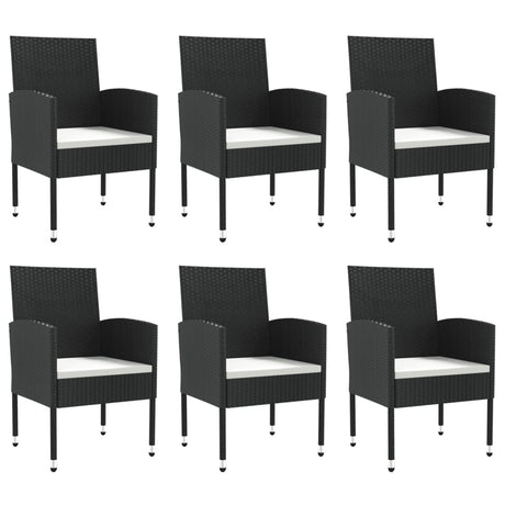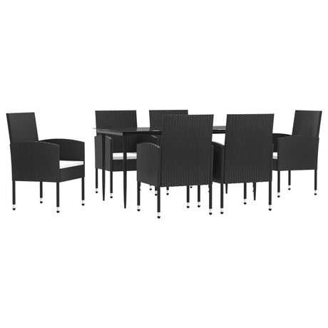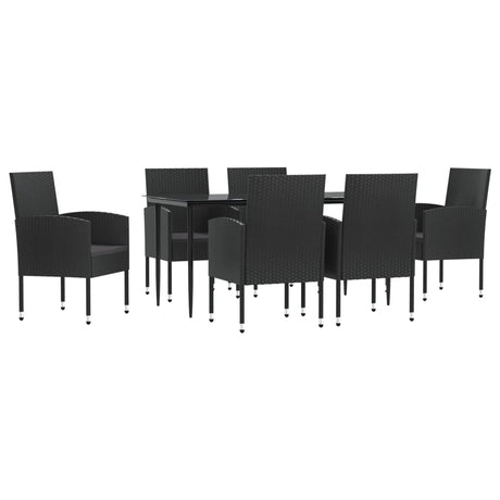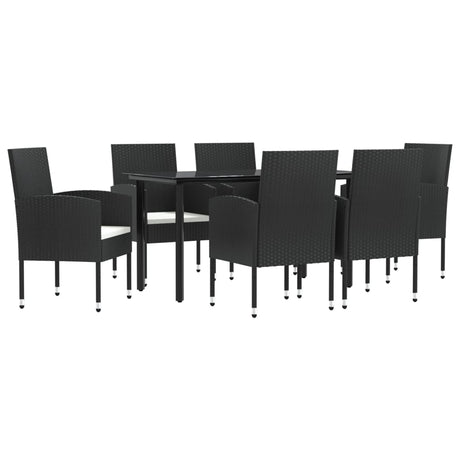 7 Piece Garden Dining Set with Cushions Black Poly Rattan