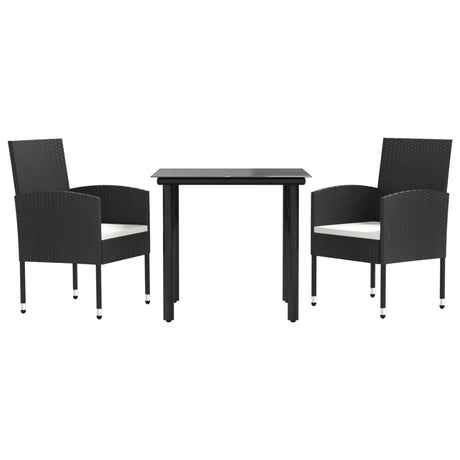 3 Piece Garden Dining Set Black Poly Rattan and Steel