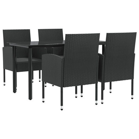 5 Piece Garden Dining Set Black Poly Rattan and Steel