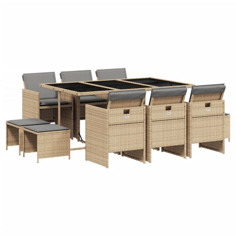 11 Piece Garden Dining Set with Cushions Mix Beige Poly Rattan