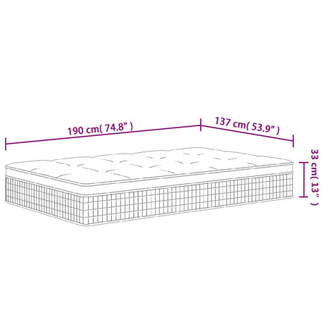 Pocket Spring Mattress Medium Plus 137x190 cm Double Size