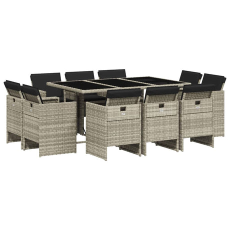 11 Piece Garden Dining Set with Cushions Light Grey Poly Rattan