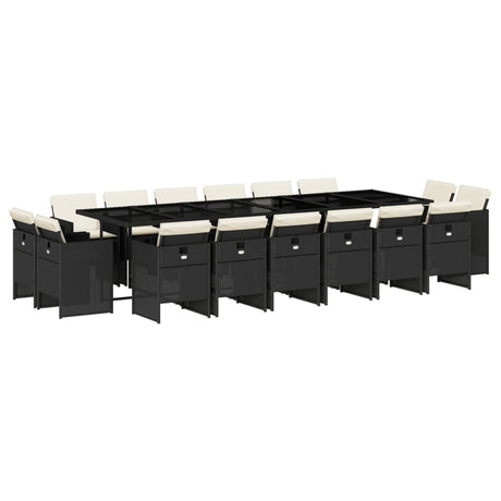 17 Piece Garden Dining Set with Cushions Black Poly Rattan