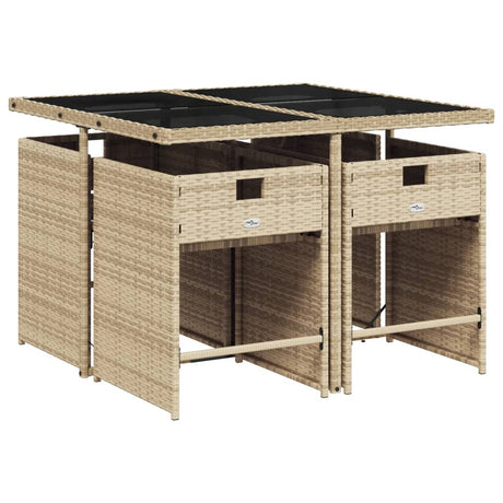 5 Piece Garden Dining Set with Cushions Mix Beige Poly Rattan
