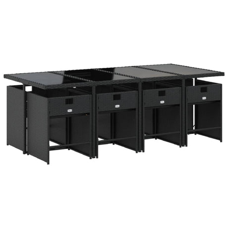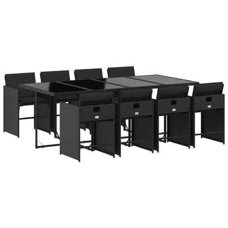 11 Piece Garden Dining Set with Cushions Black Poly Rattan