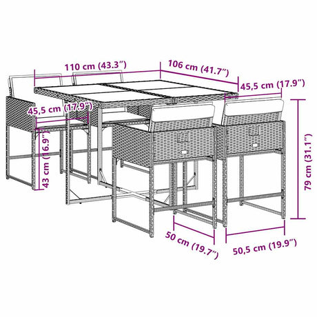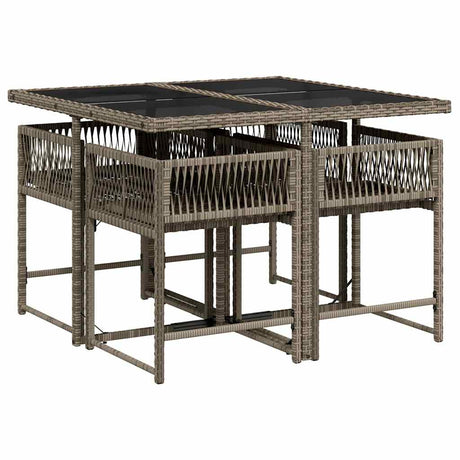 5 Piece Garden Dining Set with Cushions Grey Poly Rattan