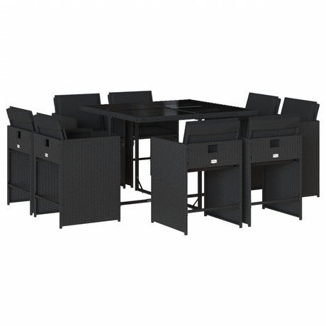 9 Piece Garden Dining Set with Cushions Black Poly Rattan