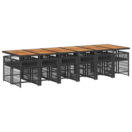 15 Piece Garden Dining Set with Cushions Black Poly Rattan