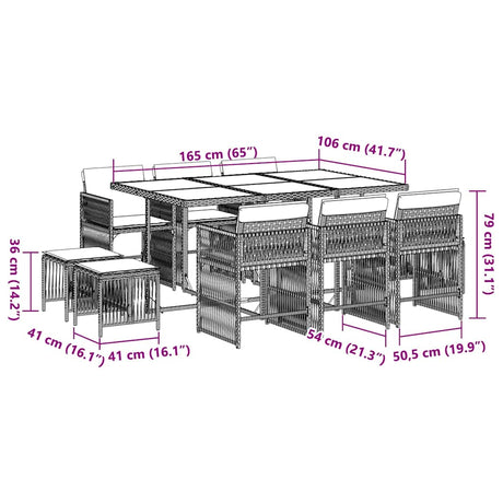 9 Piece Garden Dining Set with Cushions Mix Beige Poly Rattan