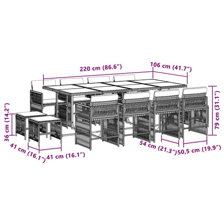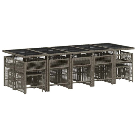 13 Piece Garden Dining Set with Cushions Grey Poly Rattan