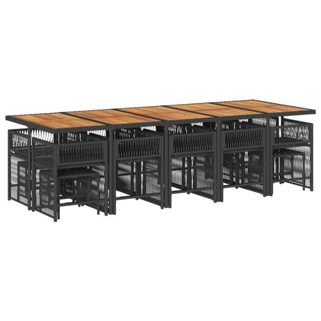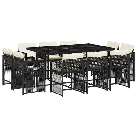 13 Piece Garden Dining Set with Cushions Black Poly Rattan
