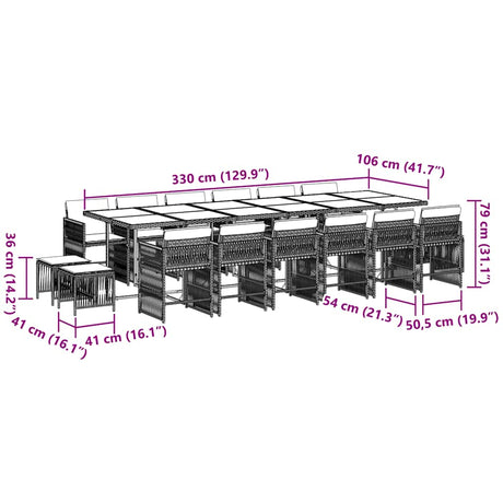 15 Piece Garden Dining Set with Cushions Grey Poly Rattan