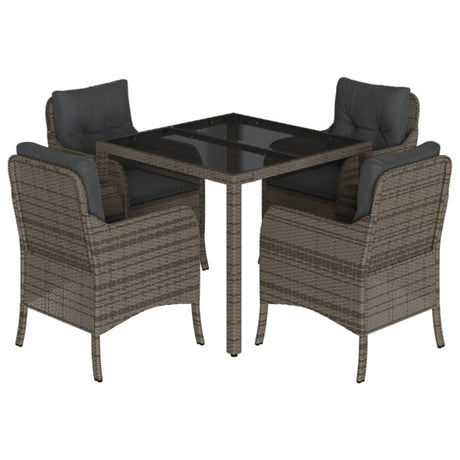5 Piece Garden Dining Set with Cushions Grey Poly Rattan