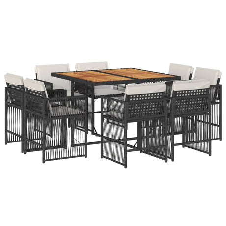 9 Piece Garden Dining Set with Cushions Black Poly Rattan