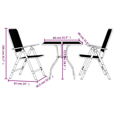 3 Piece Garden Dining Set Anthracite Metal Mesh