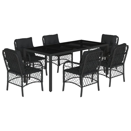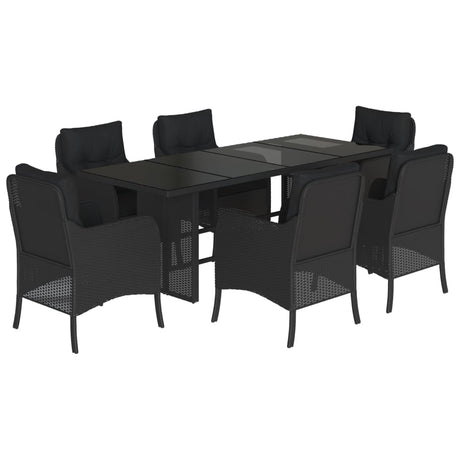 7 Piece Garden Dining Set with Cushions Black Poly Rattan