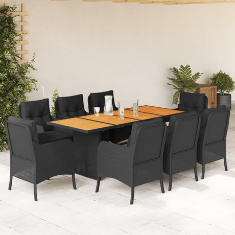 9 Piece Garden Dining Set with Cushions Black Poly Rattan