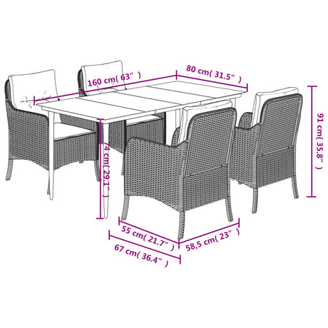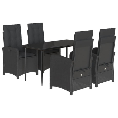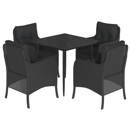5 Piece Garden Dining Set with Cushions Black Poly Rattan