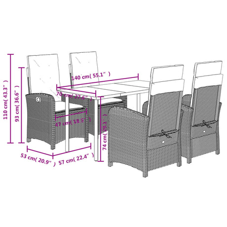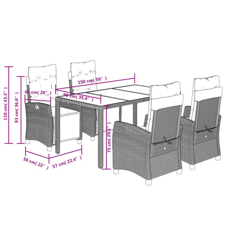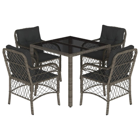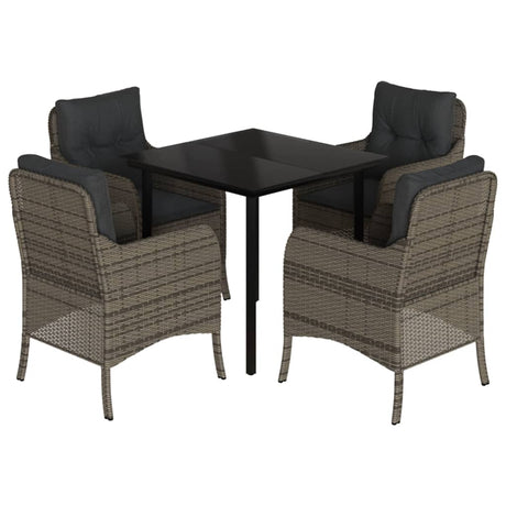5 Piece Garden Dining Set with Cushions Grey Poly Rattan