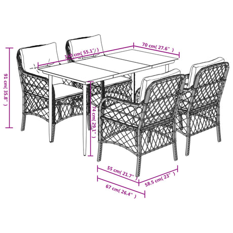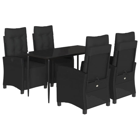 5 Piece Garden Dining Set with Cushions Black Poly Rattan