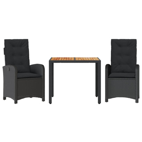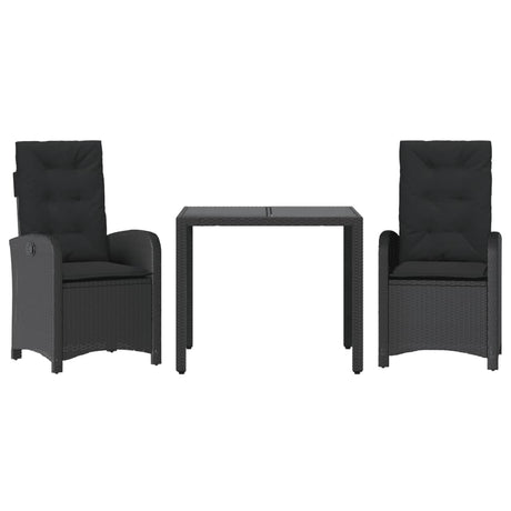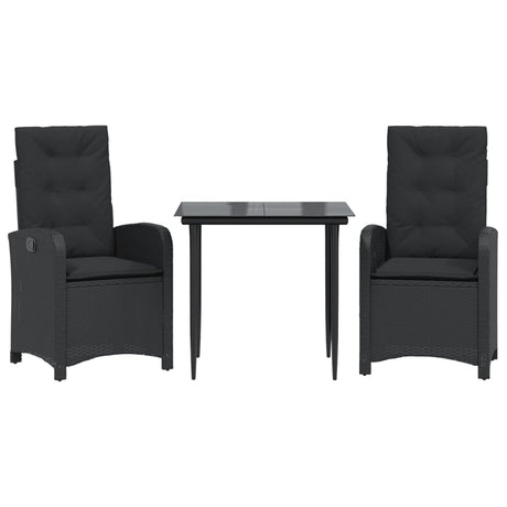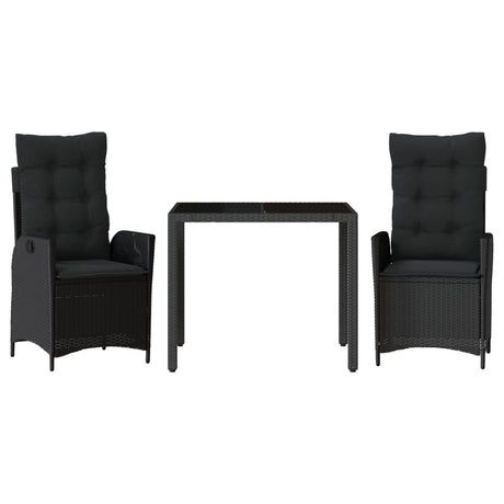 3 Piece Bistro Set with Cushions Black Poly Rattan