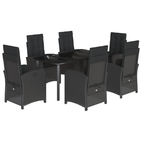 7 Piece Garden Dining Set with Cushions Black Poly Rattan
