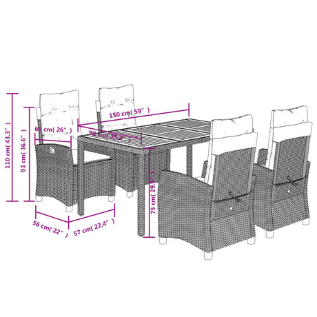 5 Piece Garden Dining Set with Cushions Grey Poly Rattan