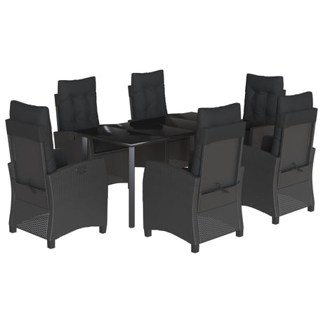 9 Piece Garden Dining Set with Cushions Black Poly Rattan