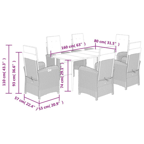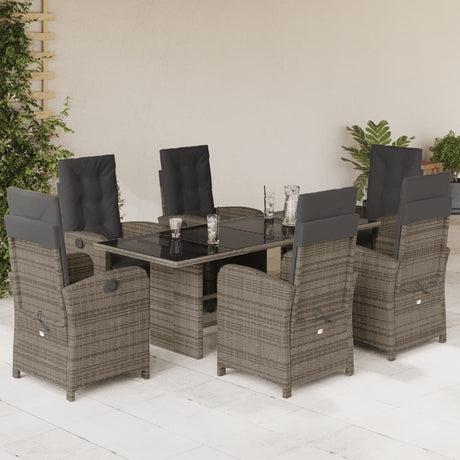 7 Piece Garden Dining Set with Cushions Grey Poly Rattan