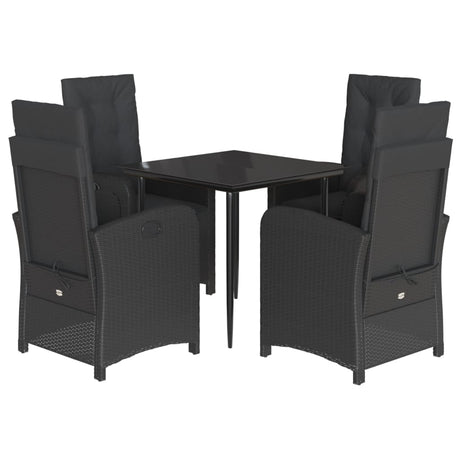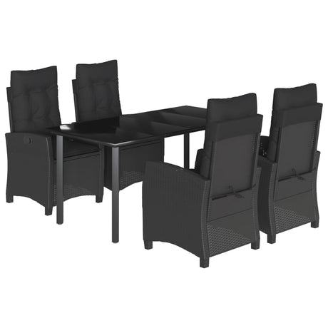 5 Piece Garden Dining Set with Cushions Black Poly Rattan