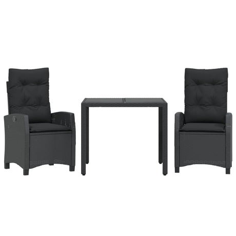 3 Piece Bistro Set with Cushions Black Poly Rattan