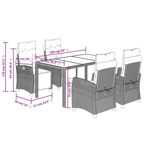 5 Piece Garden Dining Set with Cushions Grey Poly Rattan