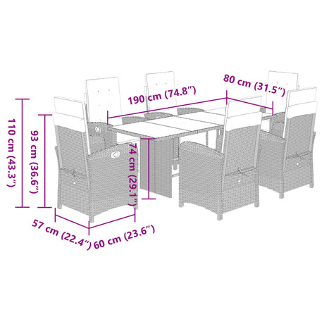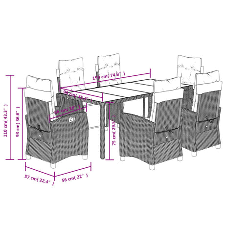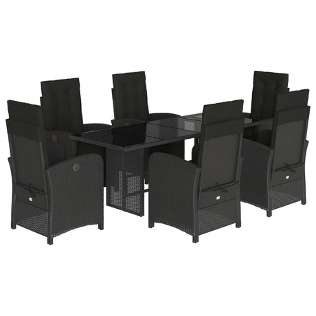 7 Piece Garden Dining Set with Cushions Black Poly Rattan