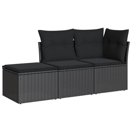 3 Piece Garden Sofa Set with Cushions Black Poly Rattan