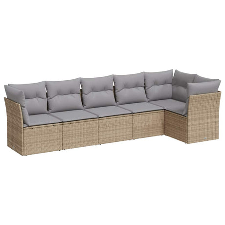 6 Piece Garden Sofa Set with Cushions Beige Poly Rattan