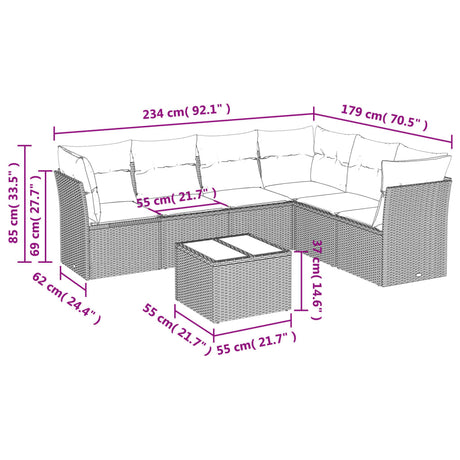 7 Piece Garden Sofa Set with Cushions Grey Poly Rattan