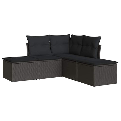 4 Piece Garden Sofa Set with Cushions Black Poly Rattan