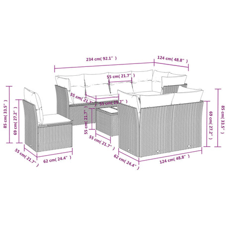 9 Piece Garden Sofa Set with Cushions Beige Poly Rattan