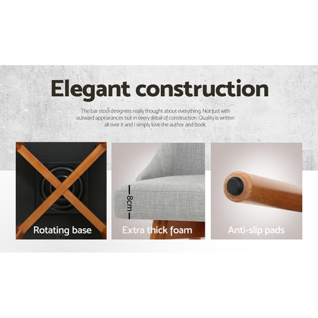 Artiss 4x Bar Stools Swivel Seat Wooden Grey